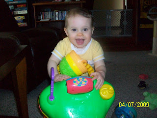 I love watching Kate move from one play thing to another. And seeing her thought process as to what will stay in her hands, and what needs to be left behind for something new. At this moment, she's working with stacking cups, a 'lawn mower', and the noise maker on the lawn mower.